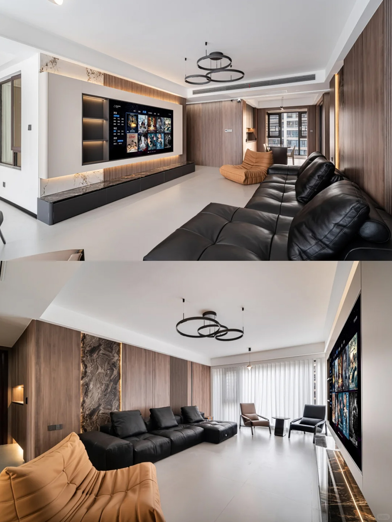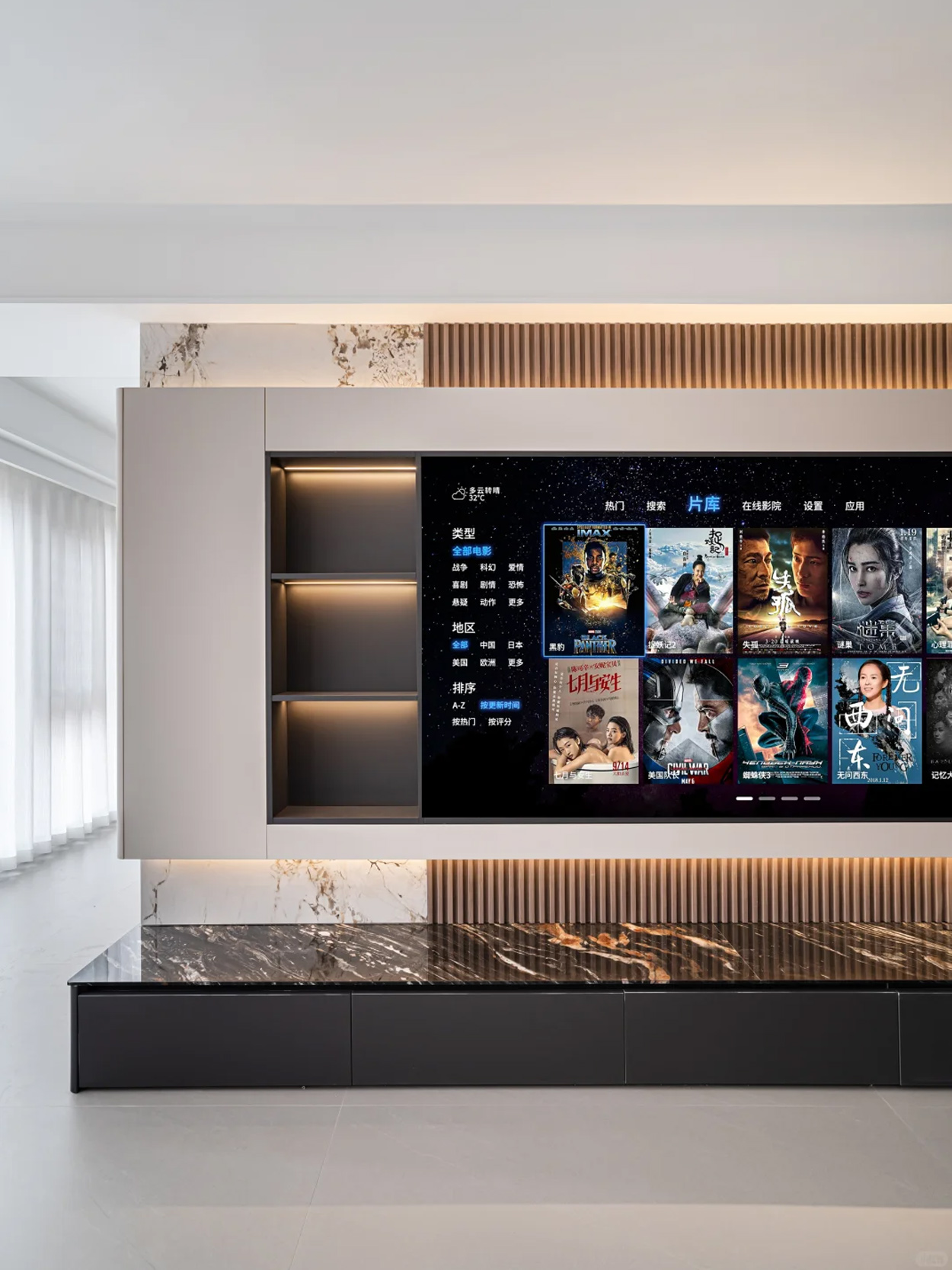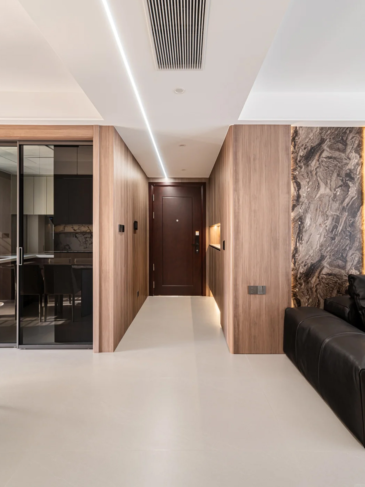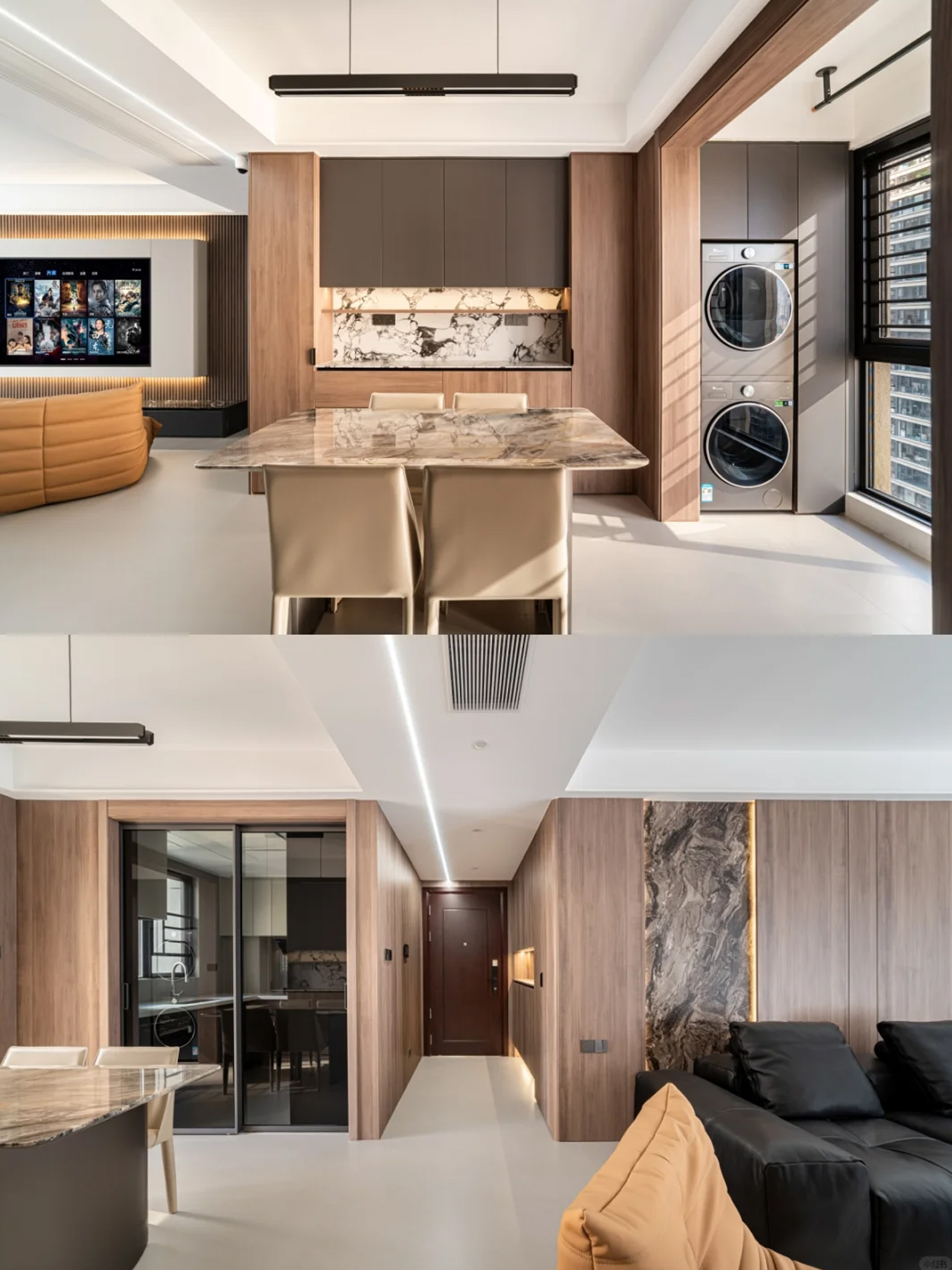 全木色木饰面+花纹岩板背景墙,简约耐看。