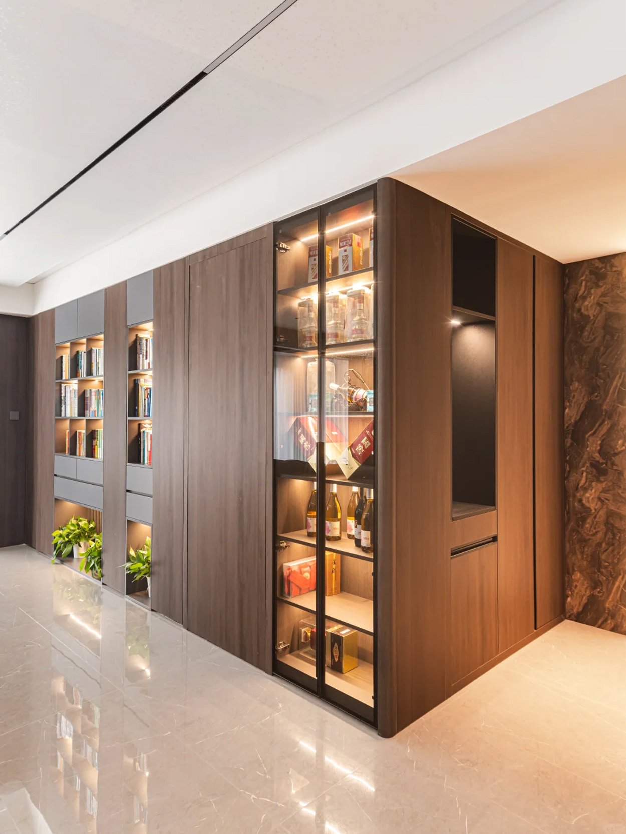 柜体选烟熏尤加利+肤感象牙灰,木纹中和冷感,摸上去温温润润;肤感门耐脏好擦,颜值实用双在线~